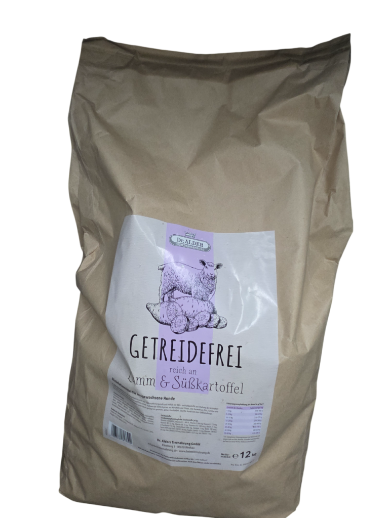 Dr. Alder’s Lamm und Kartoffel besteht aus wertvollen Proteinen aus Frischfleisch und Fleischmehl in Lebensmittelqualität. Hochwertige Kohlenhydrate aus Kartoffeln und Erbsen, eine Vielfalt an Obst, Gemüse und Kräutern sowie mehrfach ungesättigte Fettsäuren, Chondroitin und Glukosamin unterstützen optimal ein gesundes, aktives Hundeleben. Ideal für Hunde mit einer Getreideallergie.